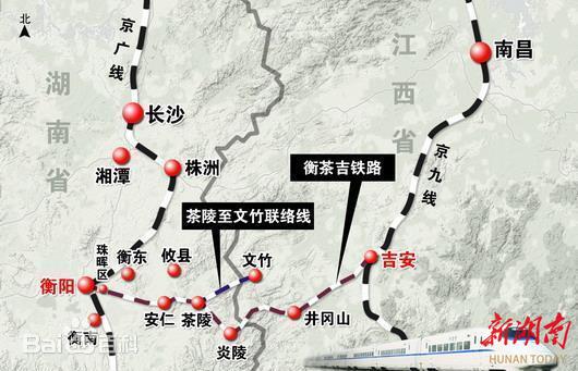 线路自京九铁路吉安南站引出,经井冈山站穿越罗霄山脉,途经炎陵、茶陵、攸县、安仁、衡东等地,终至京广铁路衡阳枢纽,设文茶联络线连接分文铁路与醴茶支线,使茶陵成为铁路“十字路口”。该铁路连通京九、京广、湘桂线,形成兰厦铁路远期组成部分,并带动沿线设置茶陵南站新区、湘赣物流园等配套规划。