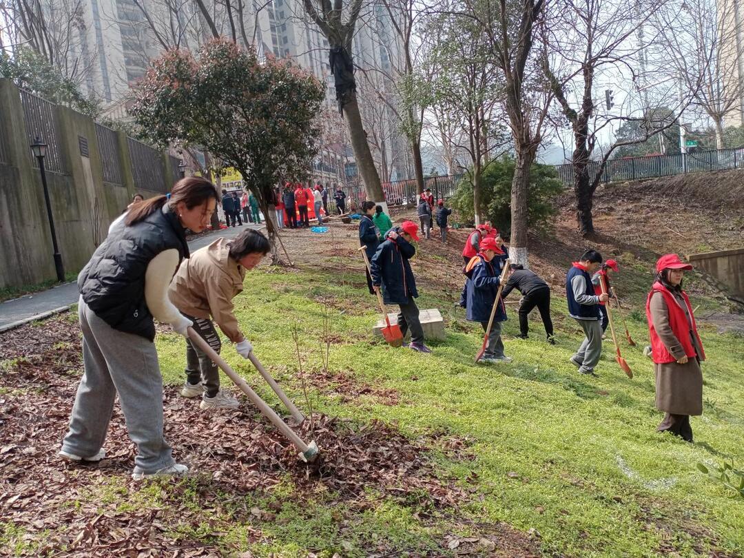 湖南日报·新湖南客户端3月13日讯(通讯员 杨凯) 3月12日,湘江新区梅溪湖街道云溪湾社区的龙王港支流河堤旁,呈现出一派热火朝天的劳动景象。一群身着鲜艳红马甲的社区党员、志愿者及居民代表、学生代表齐聚于此,他们手持锄头、铁锹等植树工具,肩扛紫薇、桂花、迎春花等观赏性绿植树苗,迅速投入到植树活动中。