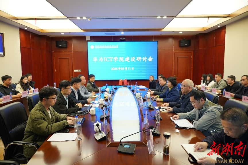 新湖南客户端3月13日讯(通讯员 丁琪)3月11日,湖南软件职业技术大学华为ICT学院建设专题研讨会召开。本次会议以深化校企协同育人、明晰学院建设路径、推动产教融合走深走实为核心目标,汇聚校企多方力量共商发展大计。学校校长杨虹出席会议,华为云湖南教育行业客户经理曾小鑫、深圳市讯方技术股份有限公司湖南省区总经理毕磊携企业相关专家到校参会,学校教务处、产教融合中心及软件工程学院、人工智能学院、信息工程学院等相关职能部门、二级学院负责人与教师代表共同参与会议,会议由教务处处长主持。