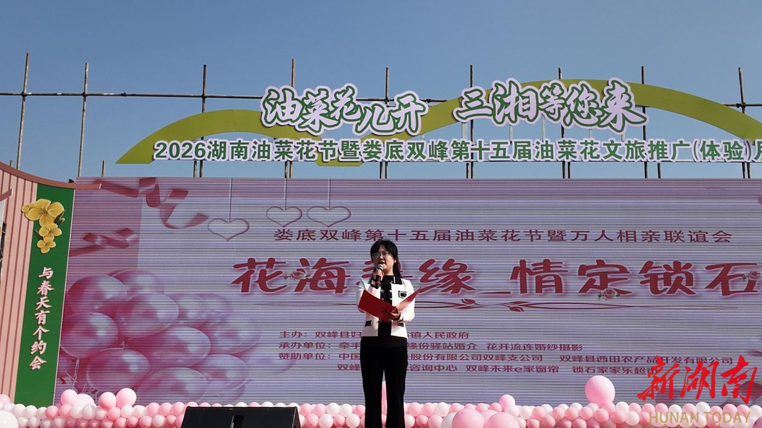 湖南日报·新湖南客户端3月13日讯(通讯员 邓轶靓)三月的锁石,万亩油菜花竞相绽放,金浪翻涌,花香醉人。3月12日,由双峰县妇联、锁石镇人民政府主办的“花海寻缘·情定锁石”婚恋交友活动在这片金色的田野里浪漫启幕。78名来自各行各业的单身青年相聚花海,在春日暖阳中邂逅良缘,最终6对青年现场牵手成功。