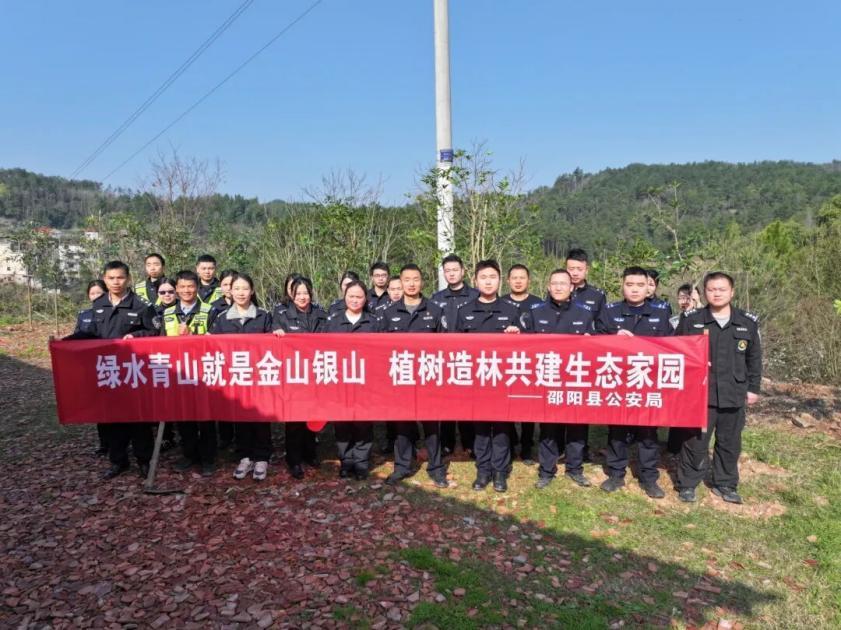 湖南日报·新湖南客户端3月13日讯(通讯员 龙嘉莉 唐江涓)春回大地万物苏,植绿护绿正当时。为深入践行“绿水青山就是金山银山”的发展理念,切实增强民辅警生态环境保护意识,传承植绿、爱绿、护绿、兴绿的文明风尚,3月12日上午,邵阳县公安局组织党员民辅警开展义务植树活动,以实际行动为美丽邵阳县添新绿、筑屏障,用“公安蓝”守护“生态绿”。