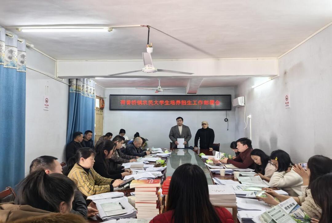 在荷香桥镇人民政府召开的招生工作部署会上,工作人员为到会的村“两委”干部解读农民大学生招生政策,重点聚焦村“两委”班子成员、乡村振兴致富带头人、高素质农民等重点群体,精准摸排生源信息,做好政策宣传动员与报名指导。大家就明确工作目标、细化责任分工达成共识,建立镇村两级联动机制,严格落实招生审核流程,确保招生质量,把农民大学生培养计划落到实处,为乡村振兴培育一批留得住、用得上、懂技术、会经营的本土人才。(张先军 赵宇强)