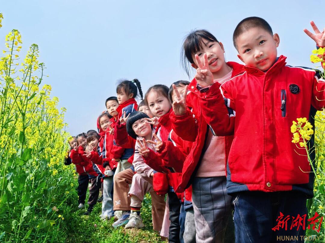 春和景明,花潮涌动。安化县乐安镇万亩油菜花基地内,金黄的油菜花缀满枝头,连绵成片。孩子们欢快地奔跑在田埂上,穿梭于金色花海间,欢声笑语与花香一同随风飘荡。