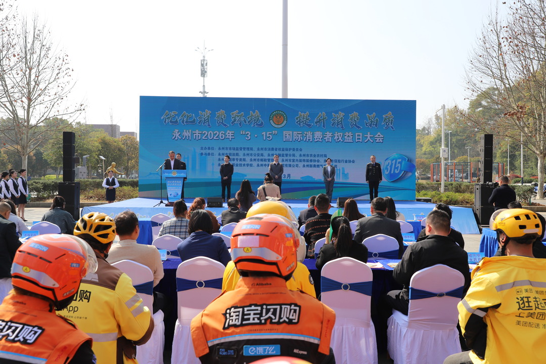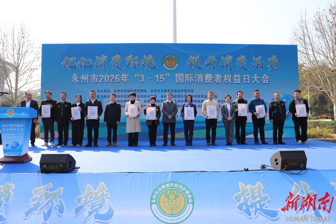 湖南日报·新湖南客户端3月13日讯(记者 杨永玲)3月13日上午,由永州市市场监督管理局、市消费者权益保护委员会联合举办的2026年“3·15”国际消费者权益日大会在永州市体育中心举行。市领导李天明、周云玲、蒋井泉出席活动。