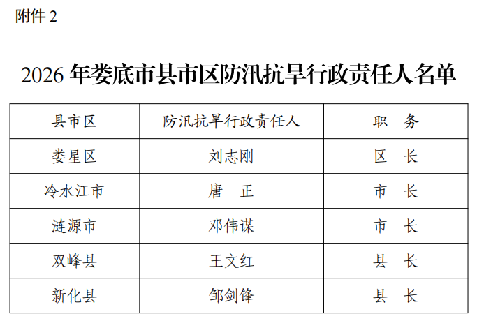 2. 2026年娄底市县市区防汛抗旱行政责任人名单