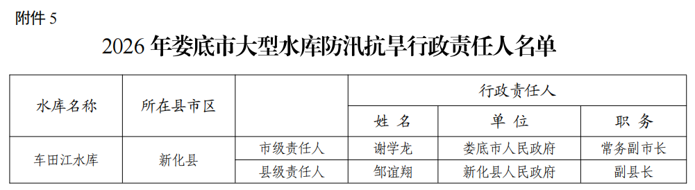 5. 2026年娄底市大型水库防汛抗旱行政责任人名单