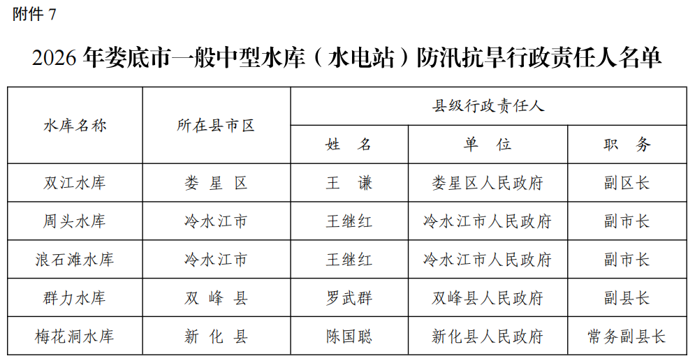 7. 2026年娄底市一般中型水库(水电站)防汛抗旱行政责任人名单