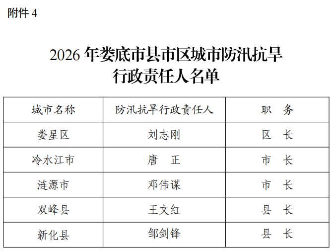 4. 2026年娄底市县市区城市防汛抗旱行政责任人名单