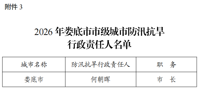 3. 2026年娄底市市级城市防汛抗旱行政责任人名单