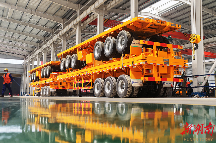 3月13日,嘉禾县高新区,湖南成鑫汽车公司51台四轴自卸半挂车及轻量化半挂车等车型发往非洲及东南亚市场。近年来,该县实施“产业强县”战略,积极开拓海外新兴市场,助力企业扩能升级、产品研发、市场开拓,推动“嘉禾制造”融入国际产业链。 黄春涛 摄(湖南图片库)