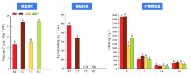 不同颜色圣女果维生素C和番茄红素含量
