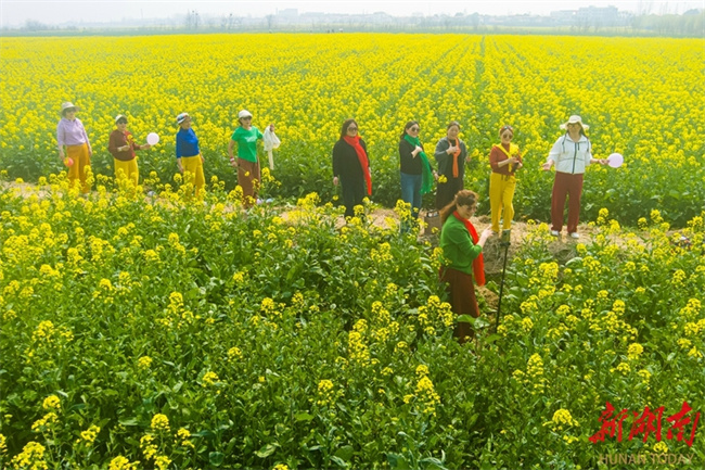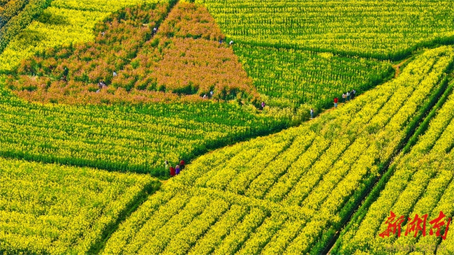 The photo shows tourists admiring canola flowers at Tangwan Village, Yiyang Neighborhood, Changning City. As the spring season comes, flowers are in full bloom across Hunan. People are taking advantage of the fine weather to enjoy spring outings and admire the flowers, savoring the delightful moments of spring. (Photo/Zhou Xiuyuchun)