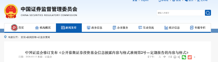 3月13日,证监会正式发布新修订的《公开募集证券投资基金信息披露内容与格式准则第2号—定期报告的内容与格式》(以下简称《准则》)。