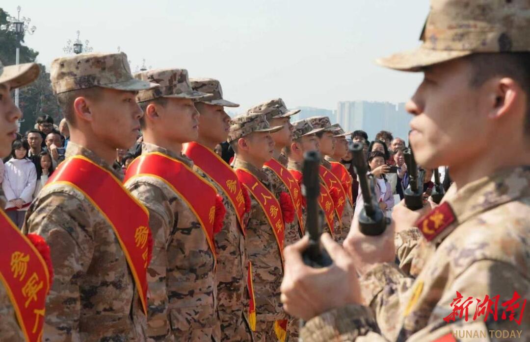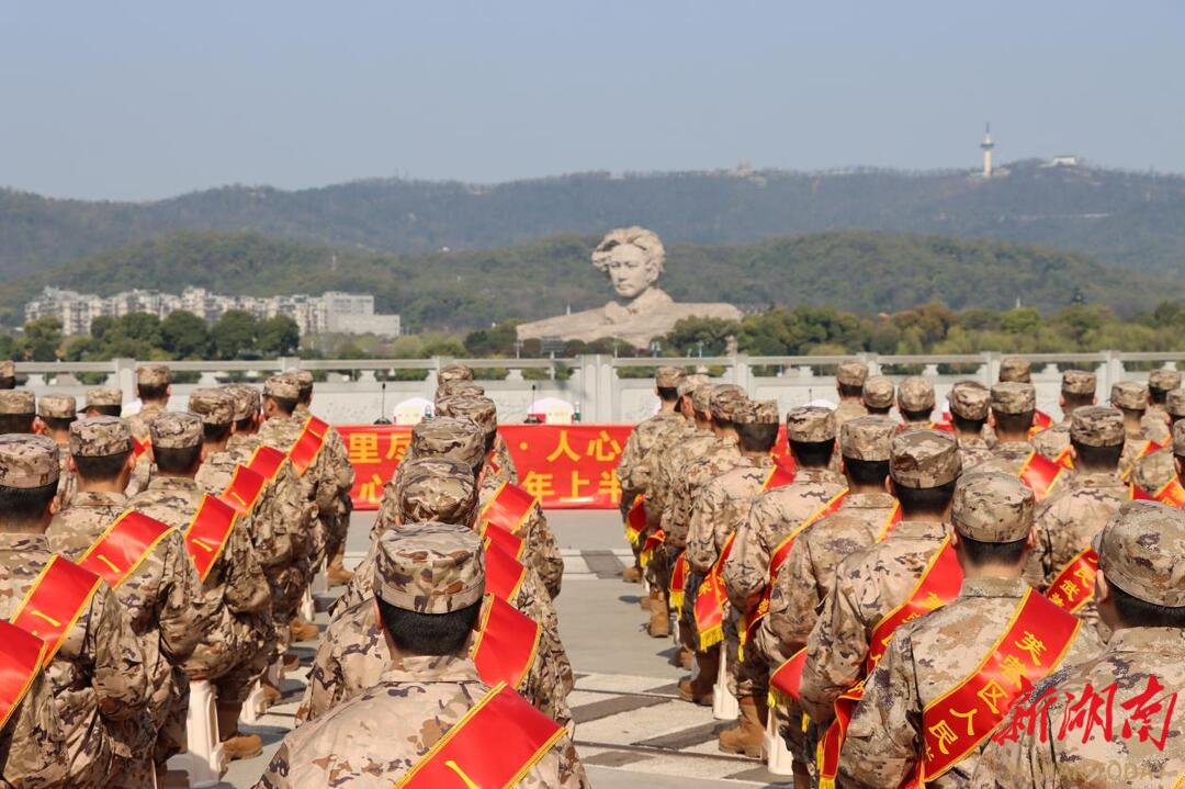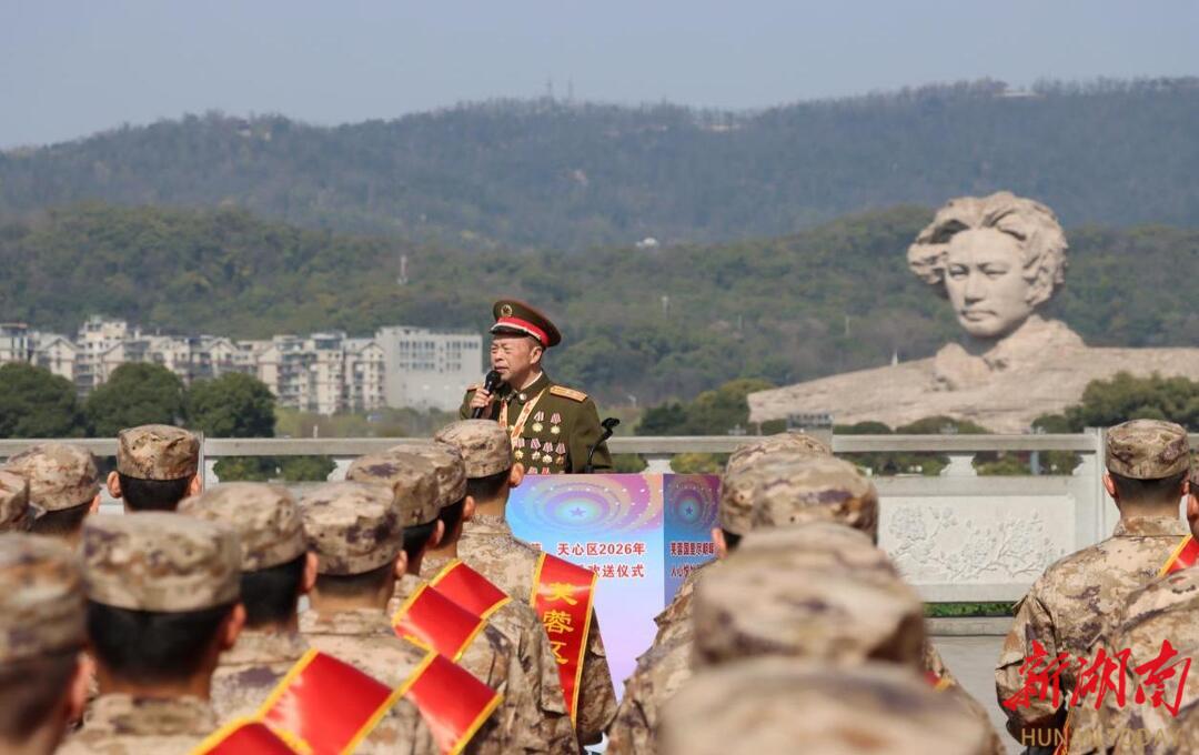 3月14日上午,长沙市芙蓉区人武部在恰同学少年广场开展2026年上半年新兵欢送仪式。即将奔赴军营的全体新兵,在橘子洲头青年毛泽东雕像对岸,带着家乡父老的殷殷嘱托,开启保家卫国的光荣征程。(湖南日报·新湖南客户端记者 肖霄 通讯员 黄紫伊 王佳德)