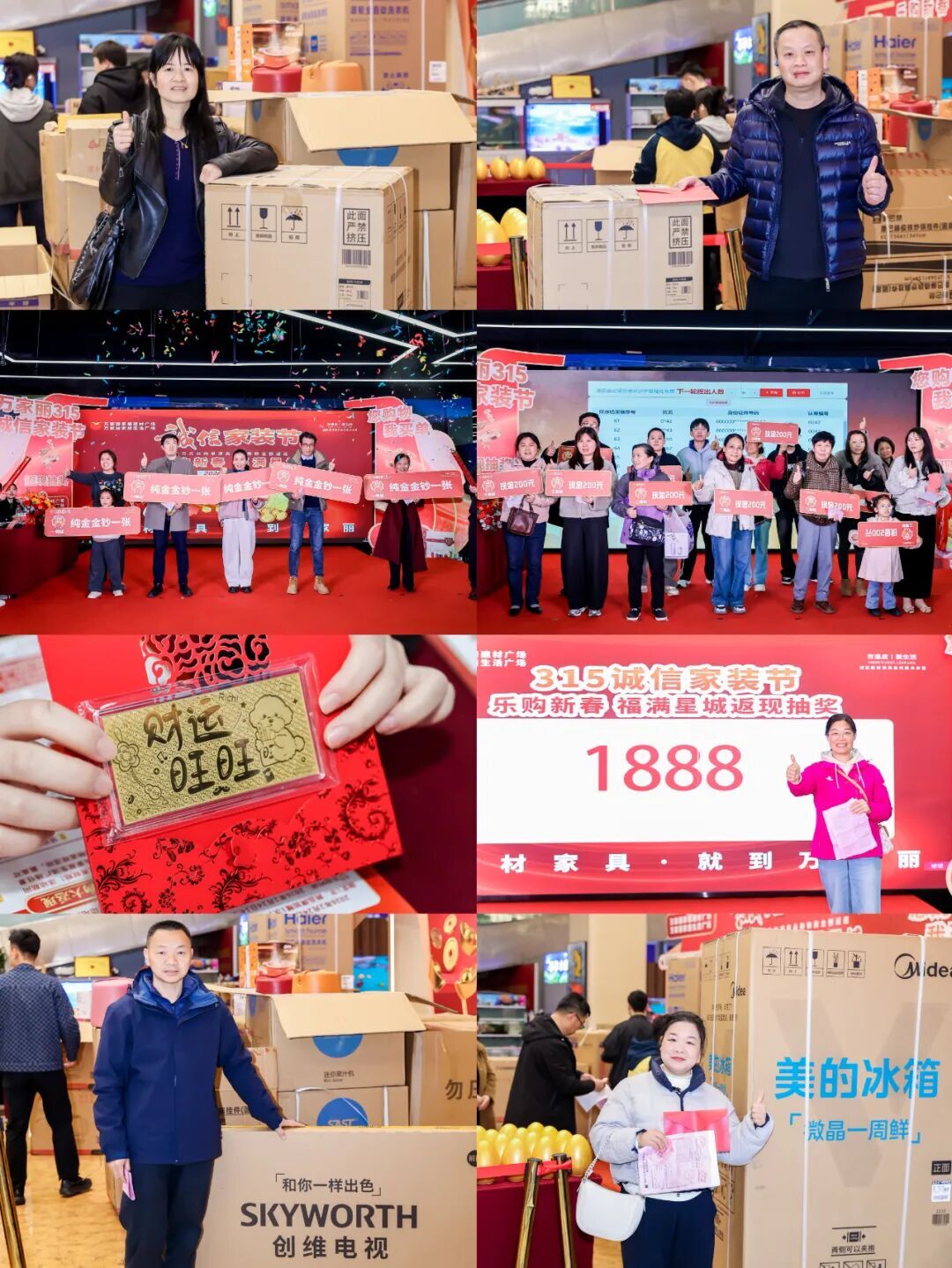 活动现场人气高涨,离不开实打实的优惠举措。本次诚信家装节推出多重消费福利:政企双补贴叠加发力,大牌集中让利、购物返现等活动覆盖门窗、卫浴、定制家居、软装家电等全品类家装产品;下单砸金蛋、家电好礼赠送等互动环节接连不断,吸引众多消费者参与。与此同时,黄金、现金大奖现场揭晓,幸运消费者依次登台领奖,掌声与欢呼声此起彼伏,将现场气氛不断推向高潮。