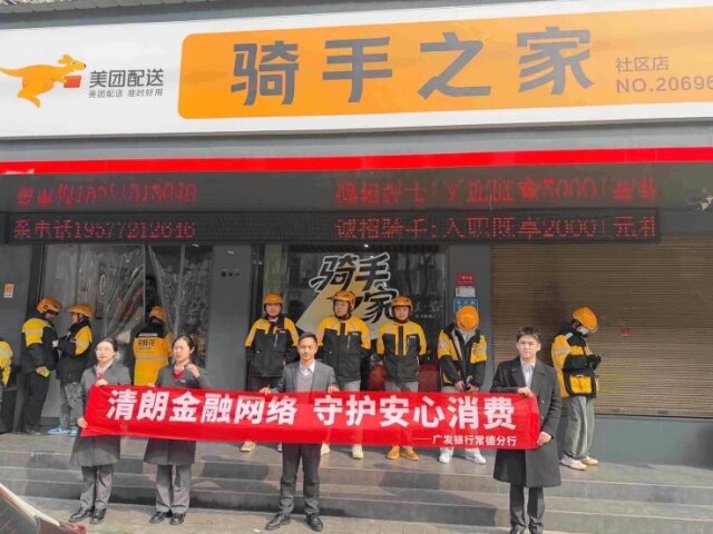 湖南日报3月15日讯(全媒体记者 黄炜信 通讯员 李艺强)近日,广发银行常德分行开展了一场面向外卖骑手、快递小哥等新业态劳动者的特色金融宣教活动。活动紧扣“清朗金融网络 守护安心消费”主题,通过“走进骑手之家”与“网点温馨互动”相结合的方式,将存款保险、防范电信诈骗、反洗钱、珍爱征信等金融知识,送到奔忙于城市街巷的劳动者身边。