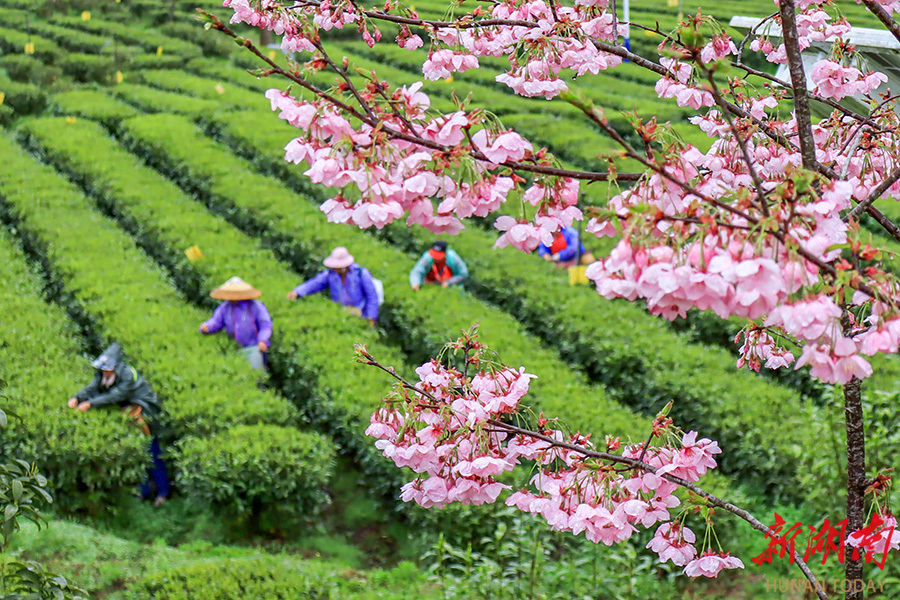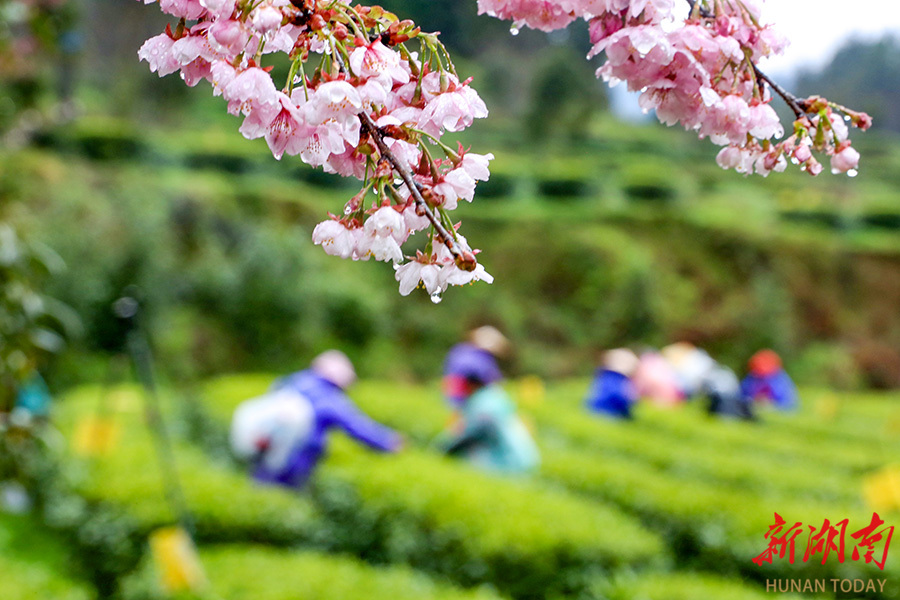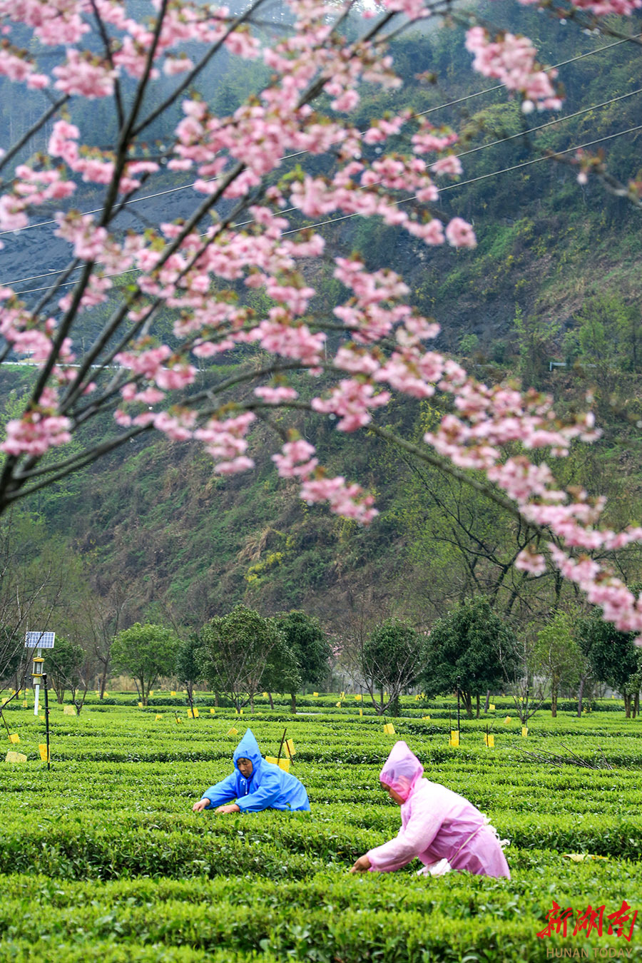 3月15日,龙山县红岩溪镇肖家坪村,茶农冒雨采摘首批春茶鲜叶。初春时节,茶农抢抓春茶上市时机,采摘春茶供应市场,增加收入。 曾祥辉 摄(湖南图片库)