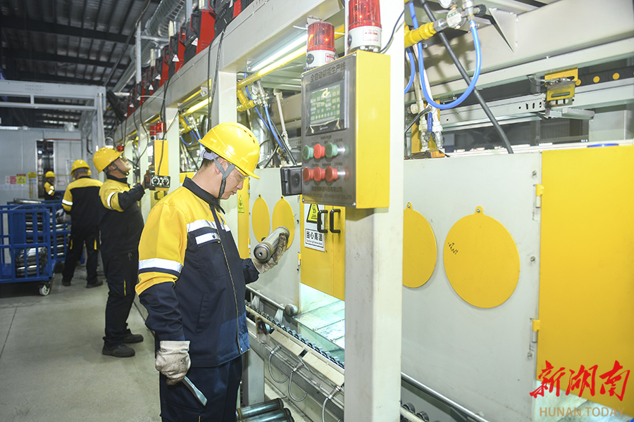 3月15日,娄底经济开发区湖南赛琳德科技有限公司生产车间,工作人员在赶制出口欧美、东南亚等地区的压力容器钢瓶订单产品,全力冲刺一季度“开门红”。 吴永华 摄(湖南图片库)
