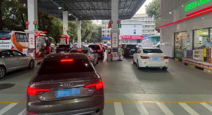 3月9日傍晚,加油站排队加油
