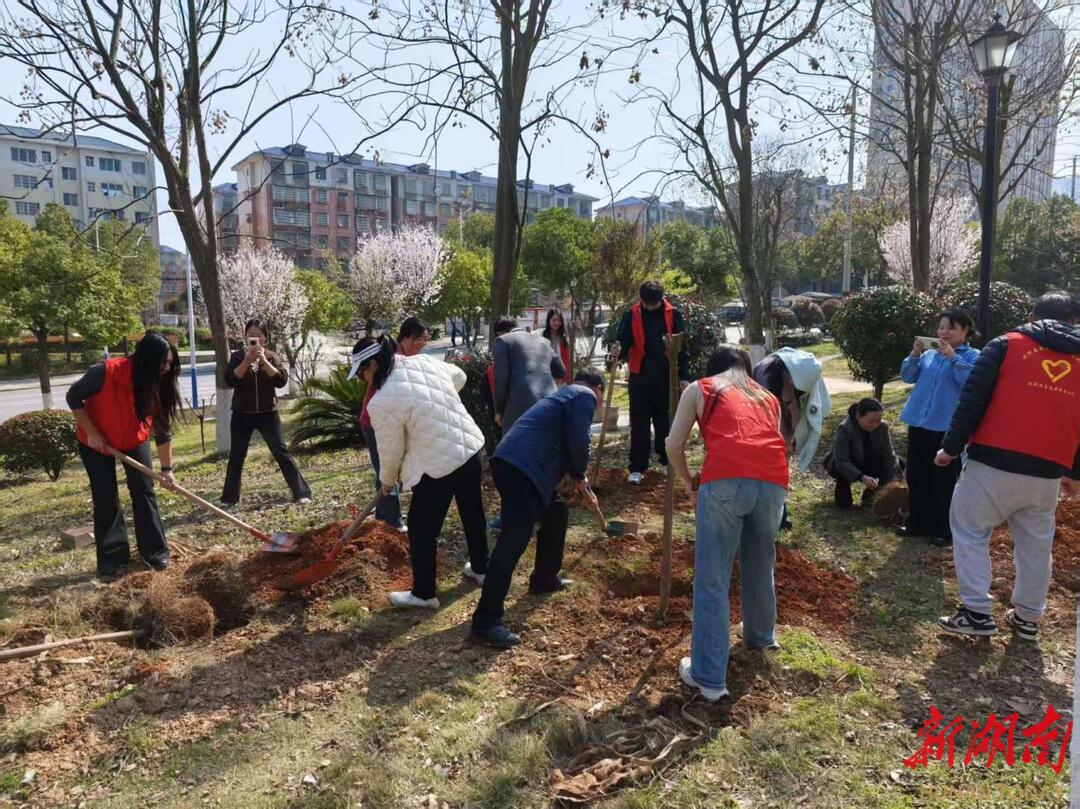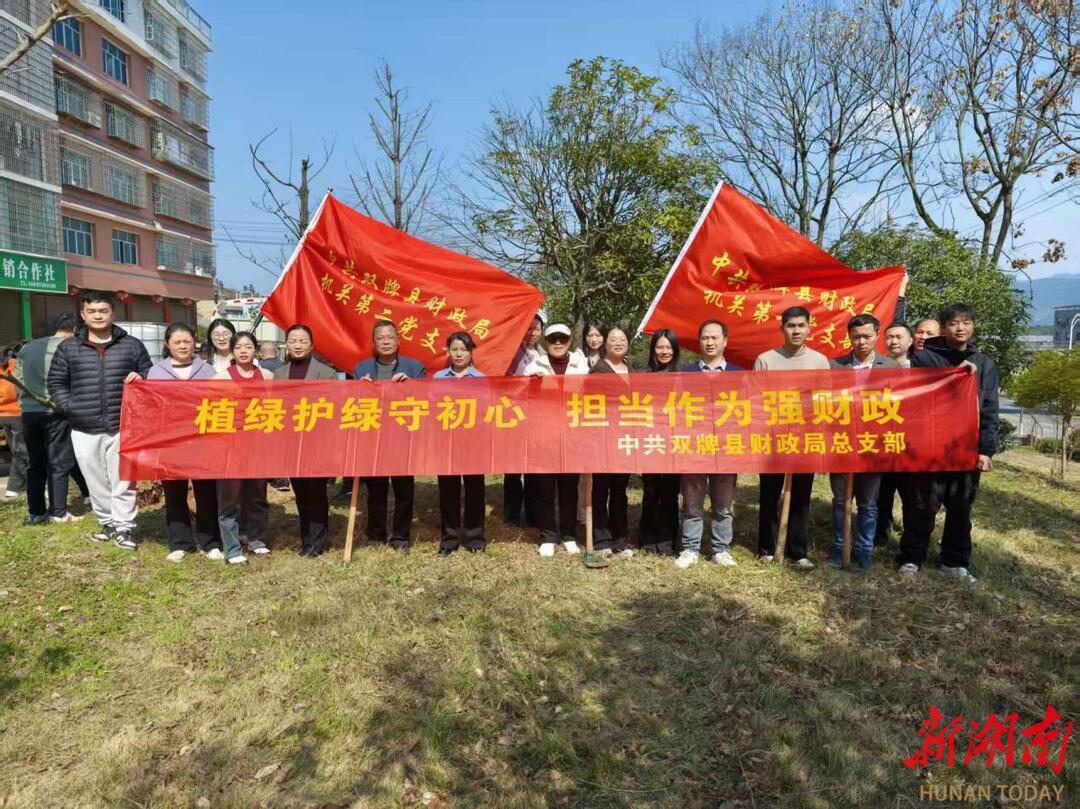 新湖南客户端3月16日讯(通讯员 石天河)春风拂暖催新绿,植树添绿正当时。2026年3月12日是我国第48个植树节,在这春意盎然、万物生长的美好时节,双牌县财政局组织党员干部20余人,来到县工业园市场前小游园,开展义务植树活动,以一抹抹新绿装点家园,用实际行动为生态文明建设增绿添彩。
