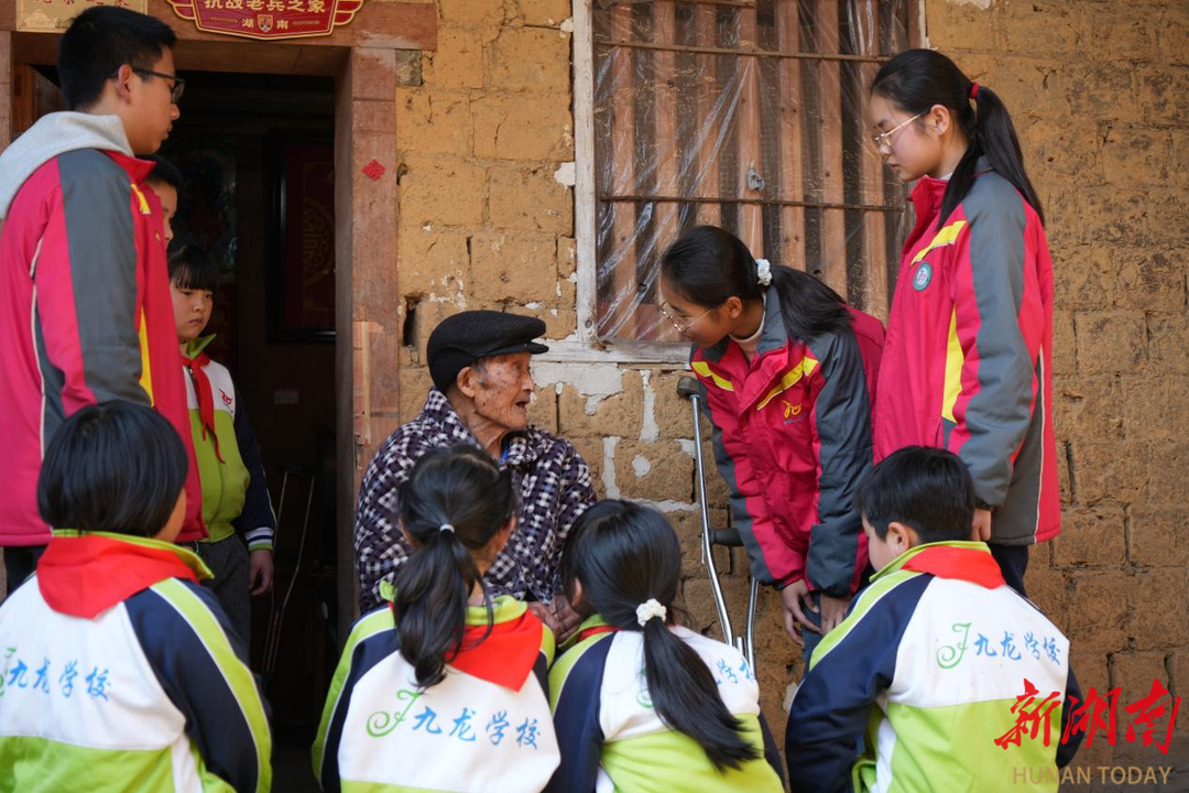 科教新报·新湖南客户端讯(通讯员 戴智红 彭萍 唐玉勤) 3月13日,隆回县九龙学校开展了一场别开生面的“行走的思政课”。师生代表前往北山镇建塘村,看望慰问102岁高龄的抗战老兵郭名巨。
