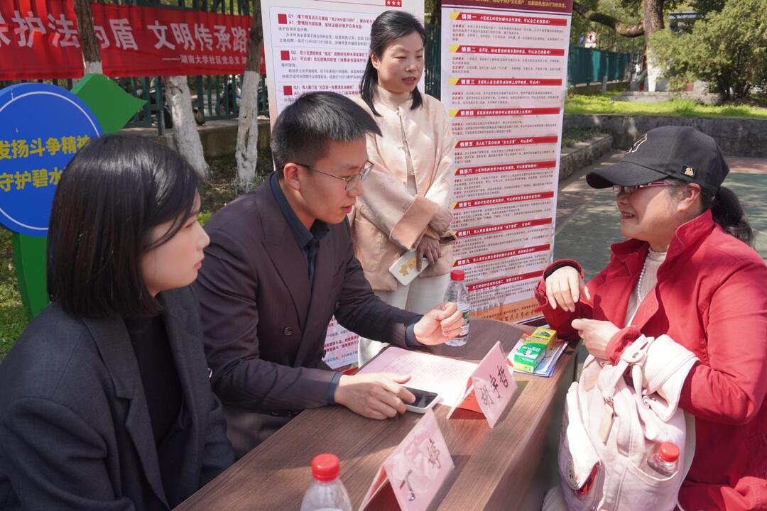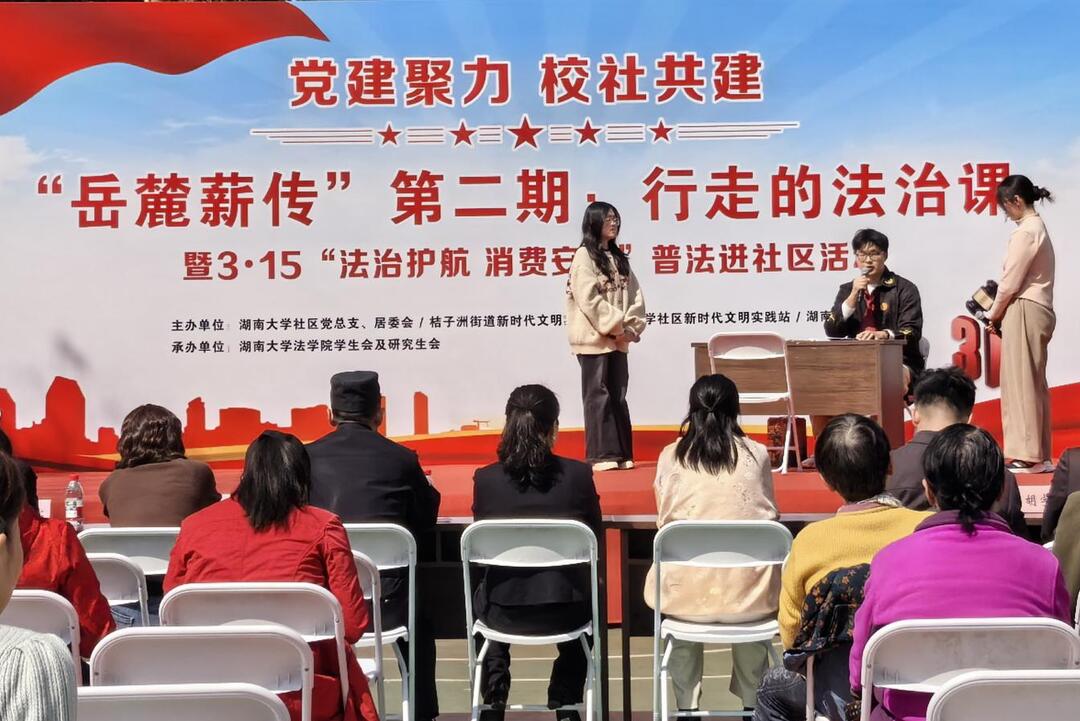 新湖南客户端3月16日讯(通讯员 谢婷)3月13日,湖南大学社区七舍前坪人头攒动,“岳麓薪传”移动思政课堂第二期——“行走的法治课”暨3·15普法进社区活动在此火热开讲。社区党员、“三长”代表、法学院师生志愿者及新就业群体近百人参加活动,在“行走”与“对话”中感受法治温度。