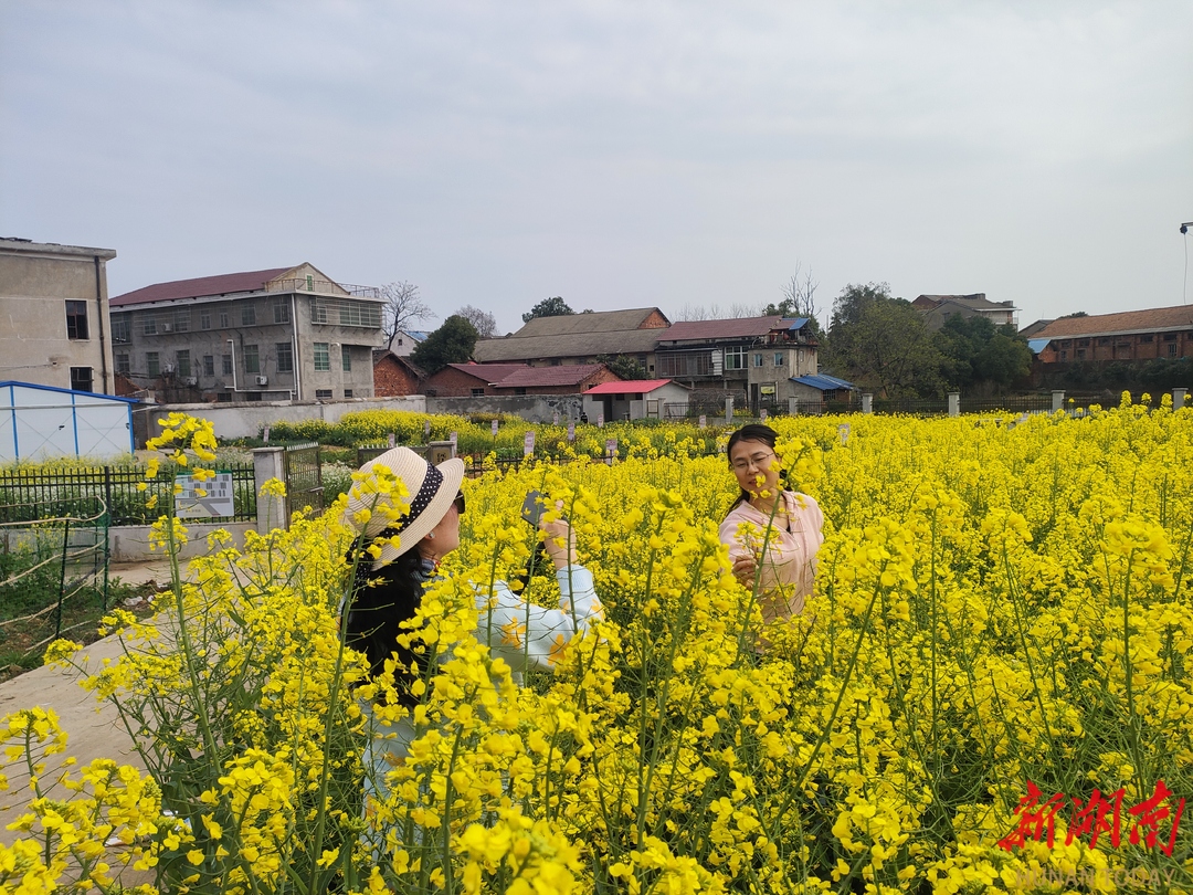 田埂的另一侧,大片油菜花竞相绽放,金黄遍野、香气袭人,勾勒出醉人的春日图景。完成任务的师生与家长纷纷走进花海,定格劳作后的惬意与春光美景。