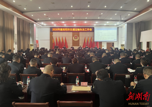 湖南法治报·新湖南客户端讯(通讯员 赵立文)近日,岳阳市交通运输综合行政执法支队召开2026年市交通运输执法工作暨党风廉政建设部署会,总结2025年工作,分析当前形势,部署2026年重点工作任务。市交通运输局党组书记、局长刘爱军到会指导并讲话,支队党委书记、支队长范律作《策马扬鞭 勇毅前行打造人民满意的交通运输综合执法队伍》工作报告。