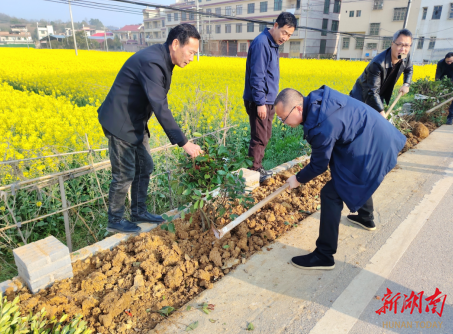 新湖南客户端3月16日讯(通讯员 刘豪 王玖华)春风催绿,万物萌发。3月12日,双峰县花门镇组织全体班子成员、片区干部、林业站工作人员及花门村干部党员共40余人,来到花门村至仁山村马路沿线义务植树,以实际行动为美丽花门增添新绿。