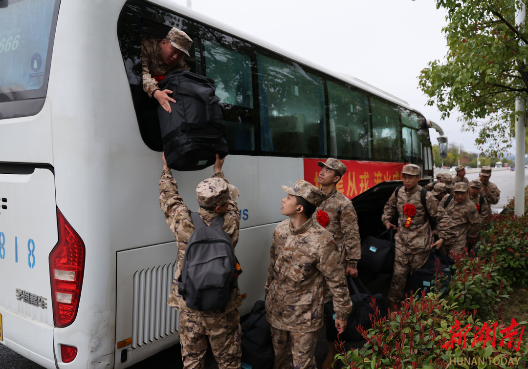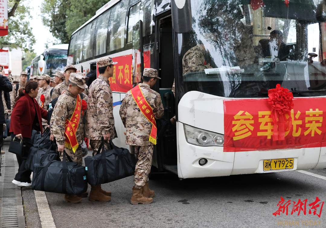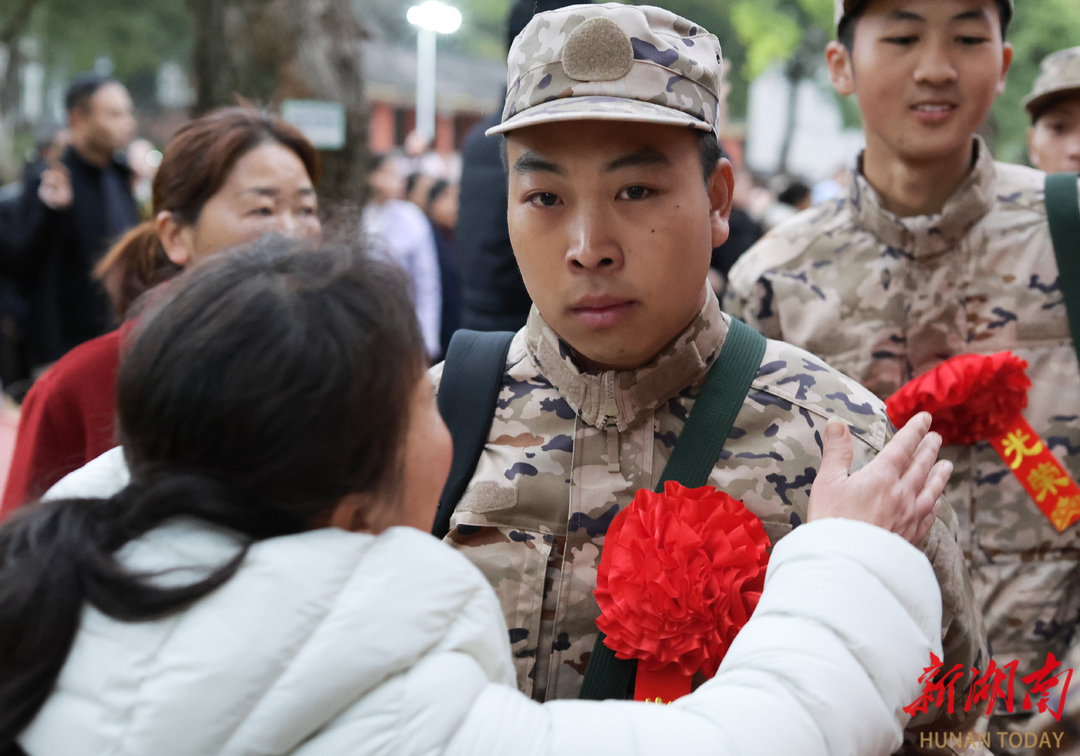 3月16日,湖南省娄底市双峰县举行新兵入伍欢送仪式。新兵们精神抖擞,胸戴大红花、身着迷彩服,带着亲人嘱托与家乡期盼奔赴军营,开启军旅生涯。(李海英 摄)