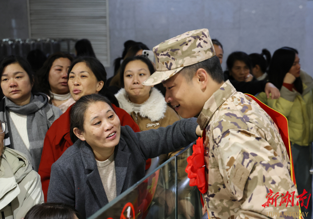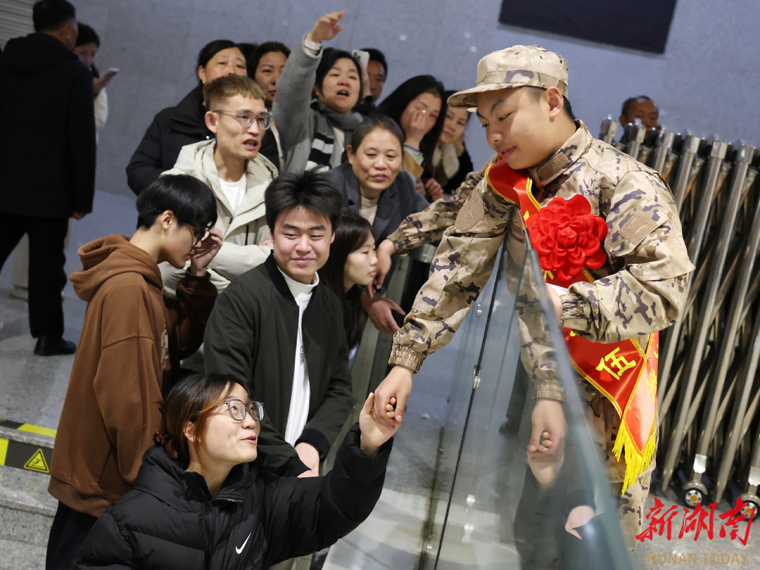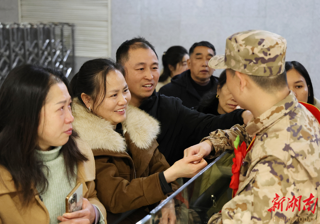 3月16日,湖南省娄底高铁南站,新兵们精神抖擞踏征程。