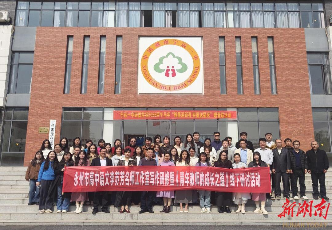 科教新报·新湖南客户端讯(通讯员 周大欢 蒋维 欧阳娟)3月14日至15日,永州市高中语文李苏芳名师工作室写作研修暨《青年教师成长之道》线下校稿研讨会在宁远一中崇德学校举行。湘潭大学出版社副社长蒋海文,湖南科技学院教授蒋扬帆,湖南科技学院教授吴春来受邀出席,工作室全体成员、《青年教师成长之道》撰稿人及学校教师百余人同参与本次研修活动,工作室首席名师李苏芳主持活动。