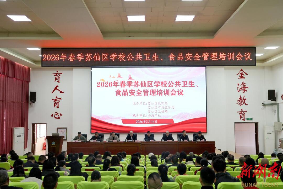 科教新报·新湖南客户端讯(通讯员 王维安 黄咏彩 欧阳海兵)为进一步提升全区学校公共卫生事件应急处置能力和食品安全精细化管理水平,切实筑牢校园安全防线,保障广大师生身体健康和生命安全,3月14日,郴州市苏仙区教育局、区市场监管局、区卫健局联合举办了2026年春季苏仙区学校公共卫生、食品安全管理培训班。培训由区教育局党委书记李先启主持,全区各中小学、幼儿园校(园)长、校医、食堂管理人员等近200人参培。