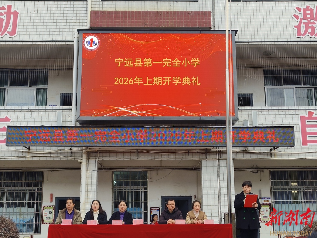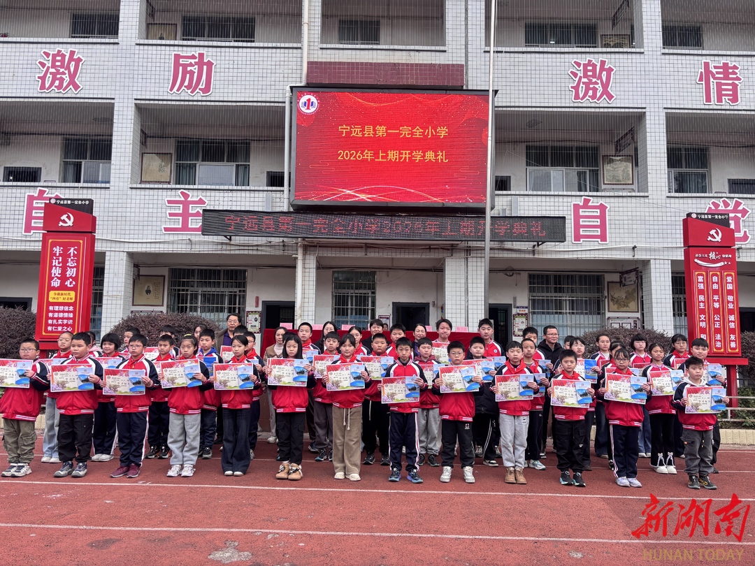科教新报·新湖南客户端讯(通讯员 樊春艳 欧阳晶)春风送暖,万象更新。3月10日上午8时,宁远县第一完全小学全体师生齐聚大操场,举行以“策马启新程,逐光向未来”为主题的2026年春季开学典礼。全校学生身着红色校服、佩戴红领巾,教师精神抖擞,校园洋溢着昂扬向上的朝气。