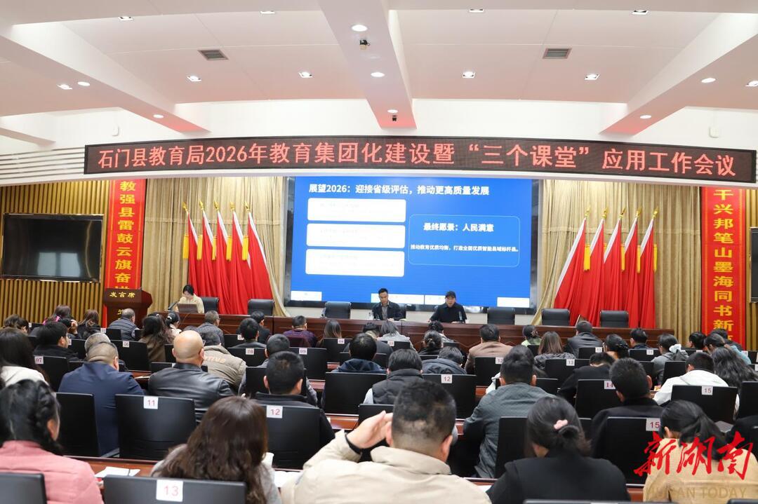 科教新报·新湖南客户端讯(通讯员 谢丽华 曹金霞)3月13日下午,石门县教育局2026年教育集团化建设暨“三个课堂”应用工作会议召开,全县58所学校的160余名教育工作者齐聚一堂,共商县域教育优质均衡发展大计,为新一年集团化办学工作谋篇布局、凝心聚力。