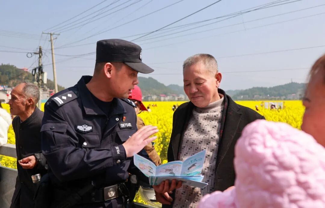 此外,民辅警还向群众发放反诈宣传手册,现场解答群众提出的各类反诈疑问,手把手指导群众安装“国家反诈中心APP”,提醒大家时刻绷紧反诈之弦,守护好自己的“钱袋子”。田间地头的宣讲、油菜花间的打卡、手把手的指导,让反诈宣传不再枯燥,既丰富了群众的节庆体验,又筑牢了群众的反诈思想防线。