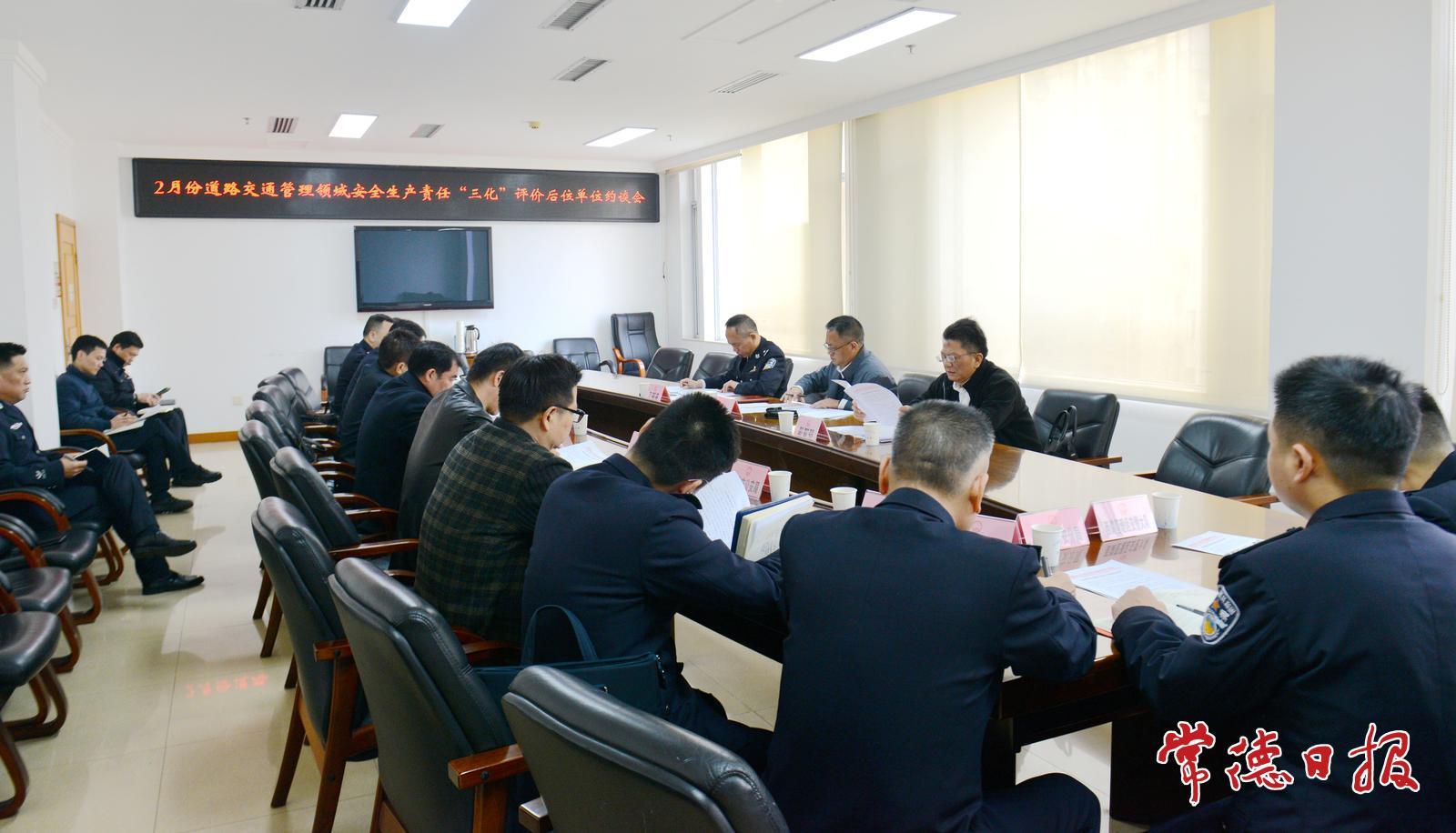 3月13日,针对常德市今年2月份四个县区(市)道路交通管理领域安全生产“智能化、常态化、科学化”责任机制运行情况,市政府召开道路交通管理领域安全生产责任“三化”约谈会,副市长、市公安局局长张永强出席会议并讲话。