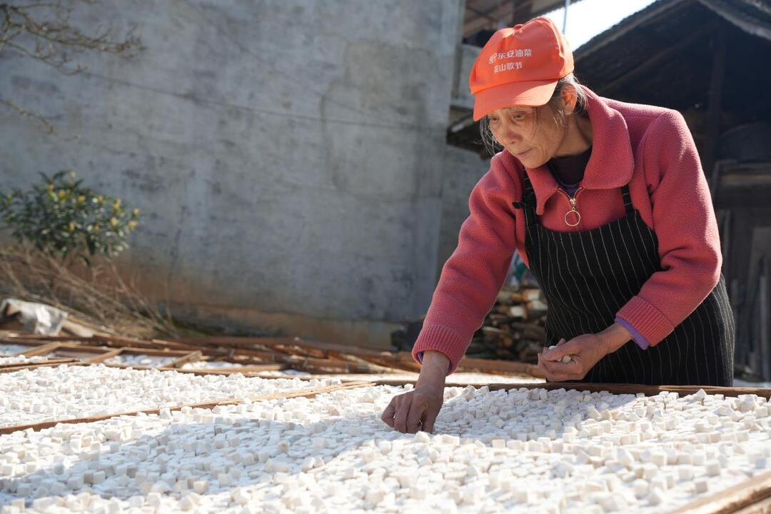 湖南日报·新湖南客户端3月16日讯(通讯员 唐芳艳 唐远程 记者 郑丹枚)3月14日,走进绥宁县乐安铺苗族侗族乡大团村,空气中弥漫着清新的药材芬芳。在茯苓加工经营户周仲庭的作坊里,十余名村民正娴熟地进行分拣、去皮、切丁、风干、筛选……,一块块不起眼的茯苓,经过精细化加工,变身助农增收的“金疙瘩”,现场一派热火朝天的生产景象。