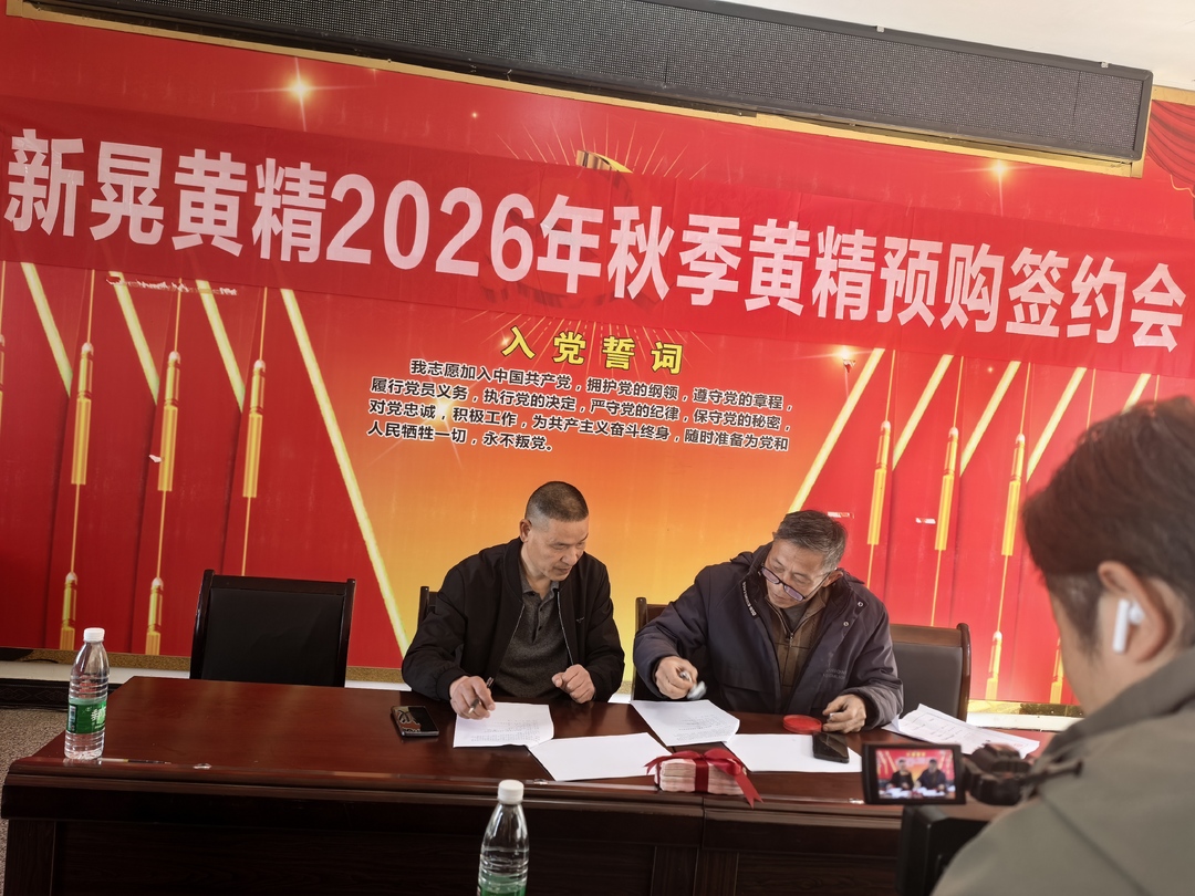 湖南日报·新湖南客户端3月16日讯(通讯员 王魁广)3月13日,在新晃侗族自治县凉伞镇茶坪村,一场聚焦黄精产业发展的秋季预购签约会顺利举行。活动以“预付定金、签约订单”的模式,由湖南侗乡黄精产业园与茶坪村农户正式签订合作协议,为当地百亩黄精种植项目提前锁定了销路与资金。签约现场还举行了“湖南侗乡黄精产业园种植基地”授牌仪式。