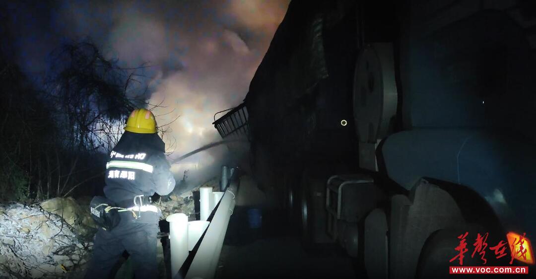 20时21分,消防救援力量抵达现场。经侦查发现,起火位置位于货车车厢尾部,车上满载大米,火势正持续燃烧。指挥员立即制定处置方案,铺设一条80毫米干线水带,出两支65毫米水枪,从货车左右两侧同步夹击火势,全力开展灭火作业。经过25分钟紧张扑救,现场明火被成功扑灭。