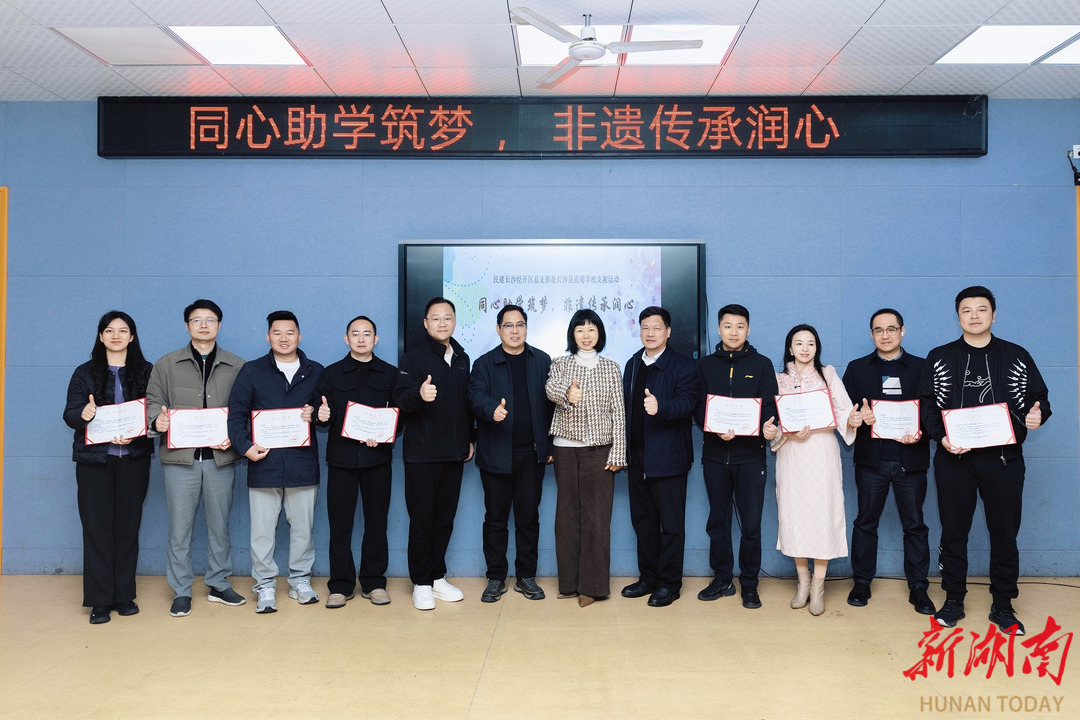 湖南日报·新湖南客户端3月16日讯(通讯员 王琰)春和景明,暖意融融。3月15日,民建长沙经开区总支联合长沙县春泥志愿服务中心赴长沙县高桥镇直荀学校开展“同心助学筑梦,非遗传承润心”主题支教活动。民建湖南省委会副主委段安娜,湖南省政府参事、湖南省政协常委、民建中南大学委员会主委李慧中,长沙县政协副主席、长沙县工商联主席王文凯,湖南省非物质文化遗产保护传承发展促进会执行秘书长陈柏伶,昆山鼎镁轻合金科技股份有限公司副总经理李展志,民建上海市委科创工委会员、武汉武水泰科智能科技有限公司董事长李博等,与民建骨干会员、社会爱心人士一道,为这所浸润着红色基因与创新活力的学校送去关怀与温暖,让非遗在校园落地生根。