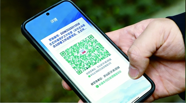 苏仙区委督查室负责人在下乡督查过程中,首先向基层干部出示“督查码”,由被督查干部现场扫码核验,只有在被赋码的情况下,督查方可进行。此举依托“湘办通”平台,进一步规范督查行为。胡雨晨 朱祺 摄