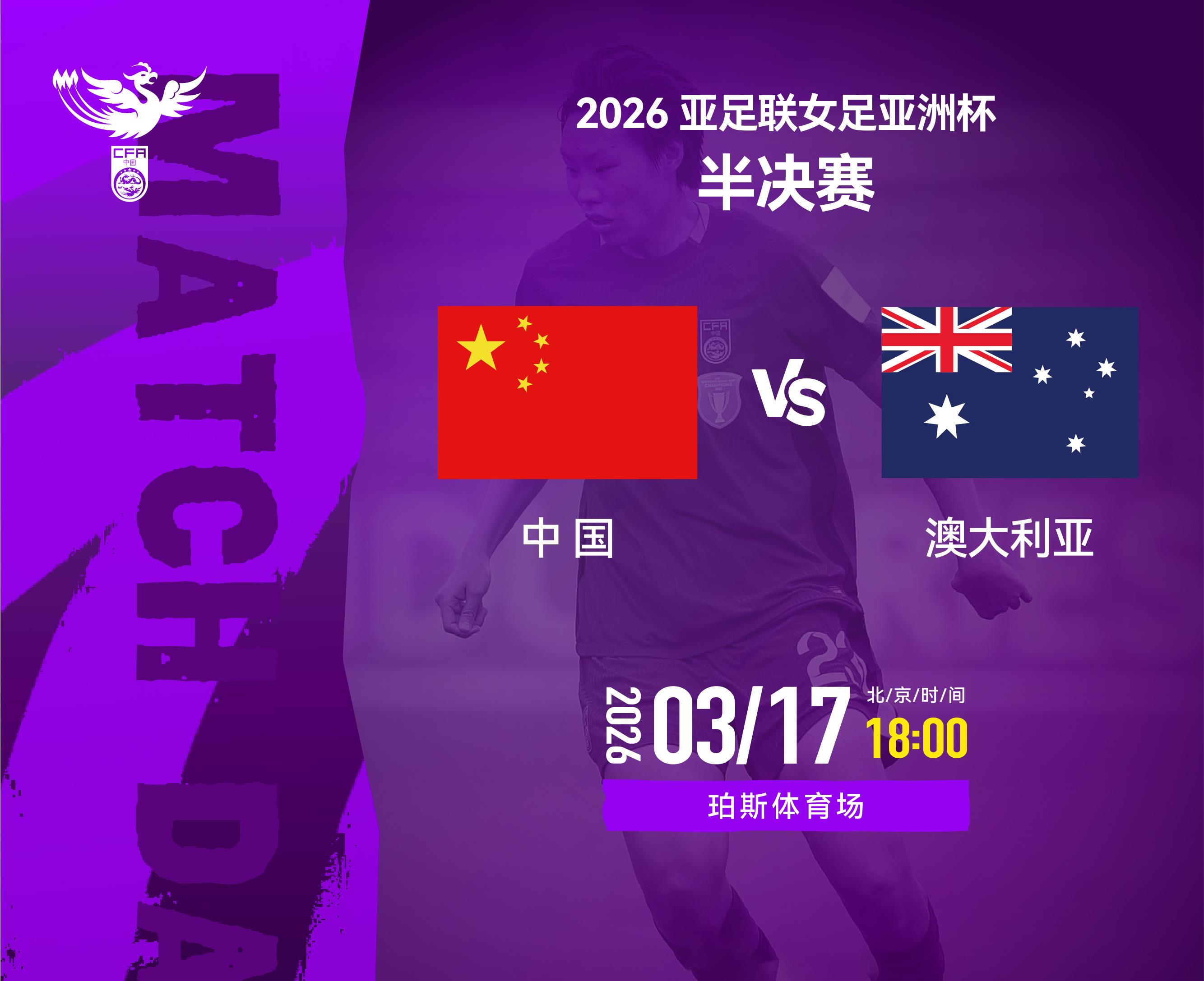 北京时间3月17日18时,中国女足将在珀斯体育场迎战东道主澳大利亚队,争夺2026亚足联女足亚洲杯半决赛的胜利。