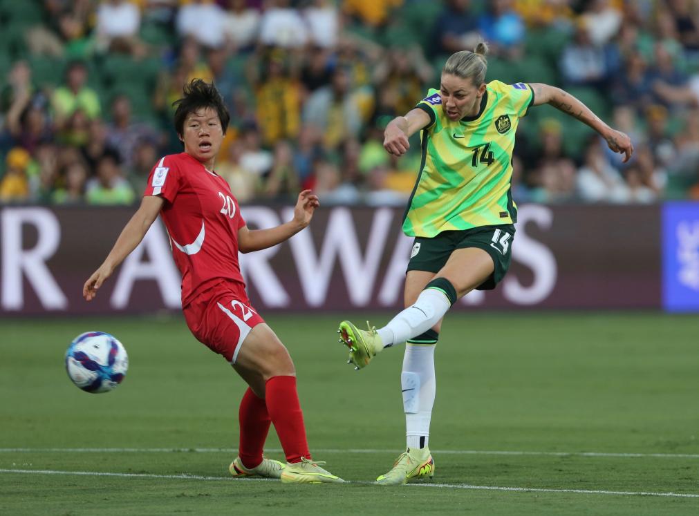↑3月13日,亚洲杯四分之一决赛,澳大利亚队2:1战胜朝鲜队。新华社发(周丹摄)