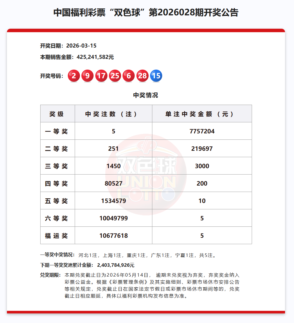 双色球第2026028期开奖为您揭晓。