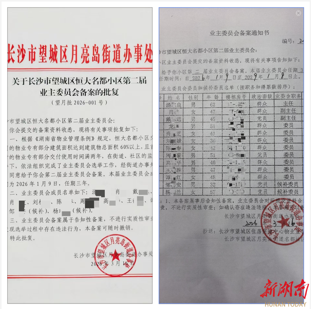 3月15日,新湖南客户端以《备案卡壳为哪般?这个小区业委会成立真难》为题,对长沙市望城区月亮岛街道恒大名都小区票选出的业委会4个多月拿不到街道办备案回执一事进行了报道。16日下午2点46分,业委会成员电告记者,他们拿到了备案回执。