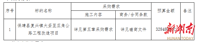 1、采购项目名称:保靖县复兴镇大妥至亚角公路工程改造项目