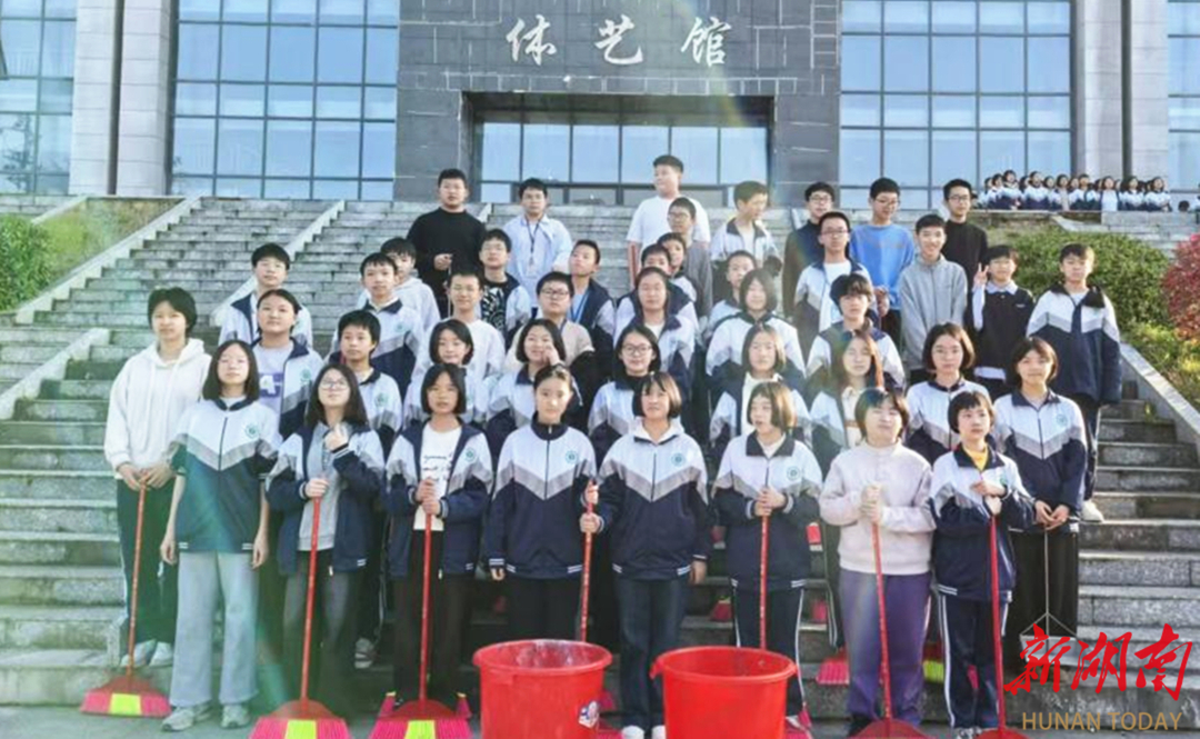 C2504班在班主任刘阳河的带领下,有的仔细清扫看台台阶的缝隙死角,不放过一处污渍;有的认真擦拭看台座椅和栏杆,力求洁净如新;有的将清扫好的垃圾集中收集。过程中,学生们相互配合、互帮互助,劳动热情高涨,脸上洋溢着喜悦的笑容。