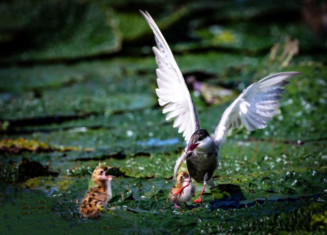 亲鸟归巢,如同一场温柔的奔赴。它收翅俯冲,急切地落向巢中张望的雏鸟。