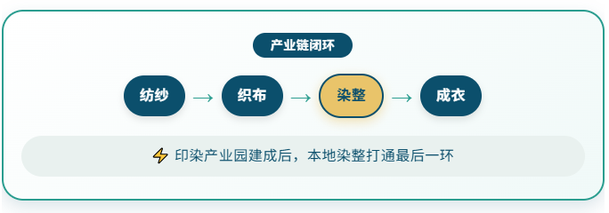 此次开工的印染产业园,正是破解这一瓶颈的核心举措。项目高标准规划建设集中染整中心、标准化厂房、智能仓储物流中心等设施,以浙江得伟科技为链主企业,引进高端印染工艺与环保技术,采用“高标准厂房+集中公共服务”模式,为企业提供“拎包入驻”服务。项目建成后,将实现华容布料本地染整、直接进入成衣制造环节,彻底打通“纺纱——织布——染整——成衣”产业链条。